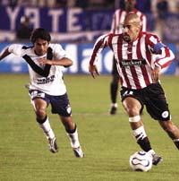 Sin especulaciones, los dos salieron a tratar de imponer su juego sin preocuparse por las virtudes del rival. Entonces, cuando Estudiantes atacaba, Verón manejaba los ritmos a su antojo y habilitada con solvencia a Pavone y Calderón. Del otro lado, cuando el que avanzaba era Vélez, la habilidad de Escudero y, sobre todo, Mauro Zárate se encargaba de imponer el desequilibrio. Por eso, con un desarrollo muy entretenido, las chances de peligro se sucedieron en los dos arcos, aunque Estudiantes impresionaba mejor y contaba con las chances más claras.