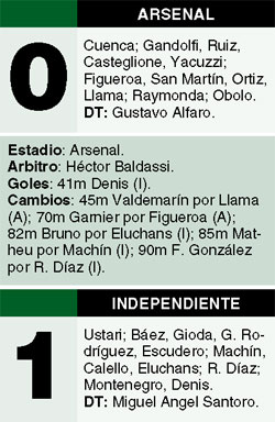 DEPORTES › CON POQUITO, INDEPENDIENTE DERROTO 1-0 A ARSENAL EN SARANDI