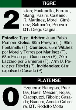 Por la final del Torneo Reducido de la B Nacional, Tigre le ganó 2-0 a Platense y jugará una de las promociones para ascender a Primera División. Los goles del equipo de Diego Cagna fueron marcados por Juan Pablo Pereira y Pablo Fontanello. El encuentro fue muy parejo y con pocas situaciones de peligro pero sobre el final Platense se vio obligado a buscar la victoria que lo metía en Promoción, y allí Tigre encontró espacios de contra y se quedó merecidamente con el clásico. “Teníamos que tomarnos este partido como una final y lo hicimos. El equipo estuvo muy sólido y en el segundo tiempo fuimos mas claros y contundentes”, declaró el defensor de Tigre Alexis Ferraro. Y agregó: “Ahora que venga cualquier equipo de primera. Lo respetamos por igual. Le pedimos a la gente que vuelva a llenar la cancha como lo hizo hoy, porque sabe que este plantel va a dejar todo”.