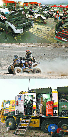 ¿Cuánto cuesta participar en el Dakar? Las cifras varían enormemente dependiendo de si hablamos de un motociclista amateur o de equipos profesionales que aspiran a la victoria. Los pilotos proceden de países y universos profesionales bien distintos; entre sus filas, encontramos desde un bombero de París hasta un piloto profesional, pasando por directivos de multinacionales. Los hermanos Patronelli, por ejemplo, trabajan en la empresa familiar de camiones en Las Flores, además de tener su banda de rock. Pero para competir en este Dakar 2010, Marcos, el puntero de la clasificación de cuatriciclos, pagó 8500 euros por la inscripción, doce mil euros para tener un camión de asistencia en la prueba y otros doce mil euros más para contar con los mecánicos de Yamaha, la marca de su cuatriciclo. Patronelli ganó la etapa de ayer a Iquique y ya amplió su ventaja en la general a una hora y 26 minutos.