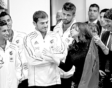 La selección de España fue recibida anoche por la presidenta Cristina Fernández de Kirchner en la Casa de Gobierno. “¿Quiénes son los tres del Barcelona que atacan?”, le preguntó la mandataria a Del Bosque. “Son muchos”, respondió el entrenador...
