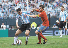 La defensa de Argentina incluyó a dos hombres que no habían estado en el Mundial de Sudáfrica, Javier Zanetti (foto) y Gabriel Milito, y ambos respondieron ante la exigencia que imprime España. El primero estuvo firme en la marca, sobre todo cuando Villa se trasladó hacia ese sector, pero casi no se mostró como salida por su lateral. A Milito se lo vio más acelerado y eso provocó que cometiera algunas faltas innecesarias que le costaron una amonestación. Inclusive, intentó salir desde el fondo con pelotazos imprecisos. En un envío de Navas perdió la marca de Llorente y éste casi convierte de cabeza.