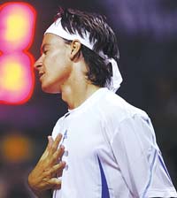 En una de las canchas auxiliares del Buenos Aires, Guga Kuerten está siendo entrenado por Hernán Gumy, ex jugador argentino de Copa Davis. Mientras esperan para ingresar a ver a José Acasuso, varios fanáticos husmean el peloteo. El brasileño practica devolución de saque, por lo que Gumy simula servicios parado dos metros dentro de la cancha. “A Coria lo tendrían que dejar sacar desde ahí”, lanza la humorada uno de los curiosos. Y más allá de la broma, no deja de marcar la preocupante realidad que atraviesa el hoy número siete del mundo. A partir de los problemas con su servicio, que se traducen en una innumerable cantidad de dobles faltas por partidos, la confianza de Coria está por el piso y eso se nota en su juego. “Es muy difícil jugar cuando uno no tiene confianza en un golpe”, admitió el Mago tras su derrota en la segunda ronda ante el español Rubén Ramírez Hidalgo. Pero así como el santafesino no le encuentra respuestas a su inconveniente, sus colegas tampoco comprenden el fenómeno, aunque coinciden en que pronto lo resolverá.