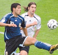 Para el último cuarto de hora, el agotamiento de Crespo lo llevó a dejar el terreno de juego. Pero lo sorpresivo resultó que para reemplazarlo apareció Cruz, un delantero de las mismas características. Con Alemania jugada en ataque, con zagueros cansados y con espacios para aprovechar el contragolpe, la presencia de Messi, o al menos de Saviola, parecía más adecuada. Es más, la sensación que dejó la variante es que simplemente se trató de una maniobra defensiva, para aprovechar la altura del delantero de Inter en las maniobras de pelota parada en defensa. No obstante, no tuvo chances de corroborarlo. Con el cabezazo de Klose llegó la igualdad y a Pekerman le quedó un conjunto descompensado para afrontar el tiempo suplementario. Y por más que Alemania lucía más desgastada, Argentina no pudo aprovechar de la mejor manera esa situación. Con Maxi Rodríguez de enganche improvisado –de a ratos Lucho González– y con Messi, Aimar y Saviola en el banco sin poder ingresar, el equipo del final no parecía el más adecuado.