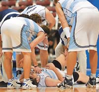 El alero Andrés Nocioni sufrió un “esguince leve” en su tobillo izquierdo en el partido que el seleccionado argentino le ganó ayer a Venezuela y deberá estar 48 horas en reposo. “Es un esguince leve de tobillo izquierdo. La lesión fue en el ligamento colateral medial y es recuperable en poco tiempo. Tendrá 48 horas de reposo y se le suministrarán analgésicos y antiinflamatorios, y se le realizará fisioquinesioterapia. No es necesario hacerle placas radiográficas, porque la lesión no lo requiere”, comentó Diego Grippo, el médico de la selección. En cuanto a la presencia de Nocioni en el partido ante Nigeria, Grippo afirmó que si el santafesino responde bien al tratamiento estará para jugar algunos minutos ante los africanos. La lesión del jugador de Chicago se produjo en el tercer cuarto del partido, cuando, luego de convertir un doble, el alero santafesino cayó sobre el pie del venezolano Alejandro Barrios.