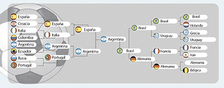La fiesta de inauguración del Mundial 2014 es el jueves y ese mismo día a las 17 empieza a rodar la pelota “brazuca” en el primer partido de fútbol entre las selecciones de Brasil y Croacia. En los dos mundiales anteriores (2006 y 2010) esta columna publicó los estudios de bancos de inversión internacionales sobre los pronósticos de qué países avanzarían en la competición hasta cuál sería el ganador de la Copa. El suizo UBS acertó con el triunfo de Italia en el mundial 2006. En el siguiente, en Sudáfrica, esa entidad financiera, Goldman Sachs, JP Morgan y Pricewaterhouse Coopers se equivocaron: ninguno predijo que la selección de España sería la ganadora. UBS, Goldman y Price habían dicho que el ganador sería Brasil; JP Morgan, Inglaterra. ¿El capitán de qué selección levantará la copa en la final del 13 de julio? ¿Será Thiago Silva o Lionel Messi?, si la final es entre Brasil y Argentina como adelanta Goldman Sachs.