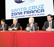El ministro de Planificación, Julio De Vido, y el gobernador de Santa Cruz, Daniel Peralta, realizaron un roadshow para presentar la licitación con la que se buscará adjudicar la concesión de las zonas francas de Río Gallegos y Caleta Olivia, ambas zonas como un mismo proyecto. La medida había sido anunciada por Cristina Fernández de Kirchner el 14 de septiembre de 2013 y se oficializó dos días después, a través del decreto 1388. El objetivo oficial es desarrollar la actividad industrial exportadora e impulsar el comercio de la región.