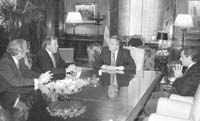 –Esto nos lleva al tema de las tarifas. Hoy se plantea un enfrentamiento global de las empresas privatizadas con el Gobierno. Yo creo que hay que separar las aguas: una cosa son las eléctricas, otra las proveedoras de aguas, y otra las telefónicas. Creo que hay que tratar caso por caso con mucha transparencia. No estamos de acuerdo con una actitud confrontativa. Es como si mañana un supermercado subiera caprichosamente los precios un 30 por ciento mientras la gente conserva el mismo ingreso: van a vender menos. Hay que ser inteligentes, pragmáticos e ingeniosos.
