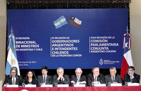 Timerman agradeció “el constante apoyo de Chile en la cuestión Malvinas y en el tema de la reestructuración de la deuda soberana de la Argentina”. Muñoz destacó que “en la agenda de trabajo quedó demostrada la voluntad de las mandatarias de profundizar los vínculos y el trabajo conjunto”, en referencia a la visita de Michelle Bachelet a la Argentina en mayo, cuando se reunió con Cristina Fernández, y recordó “la ayuda que inmediatamente nos ofreció la Argentina cuando sufrimos el incendio forestal en Valparaíso”. El jefe de Gabinete, Jorge Capitanich, destacó “los avances logrados en la agenda bilateral, con el objetivo de duplicar y mejorar la conectividad entre ambos países”. “Es muy importante y trascendente remarcar que esta relación implica reconocer lo que significa para Argentina y Chile el intercambio comercial. Y también lo que significa unir ambos países en términos de extensión territorial, de consolidación del producto interno bruto y también del número de habitantes”, explicó.