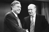 - En cuanto a las privatizadas, las autoridades apuntan a obtener aprobación parlamentaria dentro de este año para una nueva ley que delegue en el Poder Ejecutivo la facultad de renegociar los contratos y de disponer entretanto incrementos tarifarios. (Este texto contradice las seguridades ofrecidas por el ministro de Planificación Federal, Julio De Vido, y la secretaria de Defensa de la Competencia y del Consumidor, Patricia Vaca Narvaja, de que el gobierno no aprovechará la delegación legislativa de atribuciones para otorgar un aumento de tarifas a cuenta. Lo difícil en estos casos es saber a quién hacerle caso. En otras palabras, quién le está mintiendo a quién: ¿Horst Köhler al directorio del Fondo, el gobierno argentino al FMI, el Ejecutivo al Parlamento, los ministros Lavagna y De vido entre sí? Pero si sólo se atiende al texto firmado, existe un concreto compromiso de reajustar las tarifas sin esperar que concluya la revisión de los contratos.