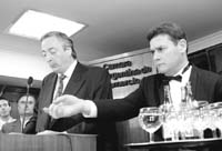 El Presidente volvió a criticar con dureza la política económica menemista, sabiendo que la Cámara de Comercio fue una de las entidades que más la defendió. La asociación, por otra parte, nuclea a las privatizadas y a otras grandes compañías. De la Vega, en esta nueva etapa, pidió a los empresarios que “hagamos una autocrítica para aprender de nuestros errores”, y reconoció que “señalamos con rapidez las deficiencias de los demás sectores, pero poco hemos avanzado en el análisis de los nuestros”.