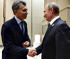 Putin le expresó su deseo de profundizar la cooperación en temas energéticos, los cuales se habían iniciado durante el kirchnerismo, y le propuso avanzar en acuerdos entre YPF y Gazprom, una de las mayores empresas gasíferas internacionales. “Queremos y confiamos en aumentar los suministros que nos llegan desde la Argentina. Además, sabemos que próximamente la Argentina presidirá el Mercosur y queremos avanzar con el acuerdo de cooperación comercial y económica con la Unión Económica de Eurasia”, le dijo a Macri durante el encuentro. El Presidente le ofreció ampliar las exportaciones de alimentos.