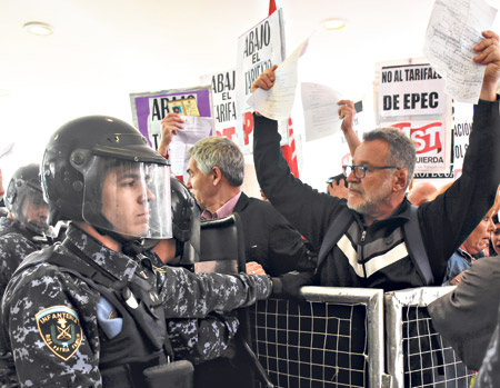 Las protestas frente a las vallas de la policía en Córdoba. Adentro, apenas un par de docenas de personas participaron de la audiencia.Más de 200 personas entre especialistas, dirigentes gremiales y barriales, pequeños empresarios, miembros de diversas organizaciones populares y usuarios particulares se habían inscripto para participar de la Audiencia Pública que se debía llevar a cabo ayer en el Auditorio Néstor Kirchner de la ciudad de Córdoba. Pero sólo se habilitó la participación de 21. Desde primera hora de la mañana y casi hasta el mediodía, hubo protestas en los alrededores del restaurado ex anfiteatro de Radio Nacional, mientras adentro se asistía a una patética sesión con menos de dos docenas de personas presentes, en simultáneo e interconectada con la que se realizaba en la Usina del Arte, en La Boca. “Fue vergonzoso, eligieron hacer una audiencia vacía para evitar escuchar los reclamos y no tener que reconocer que no tenían respuestas a los pedidos de información”, explicó a Página/12, desde la capital provincial, el abogado y ex diputado nacional Horacio Viqueira, representante del movimiento Ciudadanos contra el Tarifazo.
