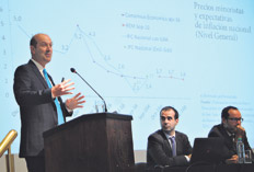 El presidente del Central se mostró optimista acerca de la recuperación de la actividad para los próximos meses. Al igual que había dicho en la presentación del anterior informe de Política Monetaria (agosto), planteó que ya se pueden observar algunos “brotes verdes” que marcan un cambio de tendencia del ciclo económico. El augurio del trimestre pasado no se cumplió y resta ver si en esta oportunidad los indicadores de PIB adelantado que elaboran en el Central fueron más efectivos para predecir.