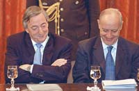 Las principales figuras del Gobierno se presentaron en el Salón Sur de la Casa Rosada para comunicar la incorporación de contratados. Estuvieron Néstor Kirchner, Alberto Fernández, Roberto Lavagna y Carlos Tomada, además de varios secretarios de Estado. Se trata de un reclamo histórico de los gremios del sector, que denuncian la incongruencia de que la propia administración pública emplea a miles de trabajadores de manera irregular. Por un decreto de Domingo Cavallo de principios de los ’90, las vacantes en el sector público están congeladas. La forma de eludir ese obstáculo por parte de las distintas administraciones fue recurrir a los contratos de locación de servicios. Son, en realidad, empleos formales no reconocidos.