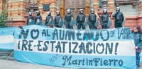 En tanto, un grupo de desocupados se manifestó ayer frente a la sede de Aguas Argentinas en contra de posibles aumentos tarifarios y para exigir que la compañía vuelva a manos del Estado. En febrero pasado, la empresa, que abastece de agua a Buenos Aires y a 17 municipios del cordón urbano, había indicado que para 2005 proyectaba pérdidas equivalentes a 100 millones de pesos por la crítica situación derivada de la congelación de las tarifas.