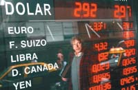 Por ejemplo, el bono más líquido del mercado local es el discount en pesos, que ayer cayó 1,95. El par en pesos, en tanto, bajó el 2,25 por ciento. Una conducta probable es que después de un largo período con el dólar clavado en torno de los 2,91, la suba a 2,96 haya provocado algún temor y, en consecuencia, la venta de bonos y el pase a dólares; en otras palabras, la baja de los bonos y la suba del dólar. Mientras en los últimos días se operaron en el mercado un promedio de 220 millones de dólares diarios, el martes las operaciones llegaron a 340 millones y ayer a 270 millones.
