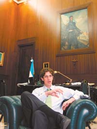 Faltan pocas horas para que el 2005 se extinga definitivamente, y se nota en las calles de la city. No sólo por lo desértico de sus calles sino también por el colchón de papeles viejos que las cubren. En la sede central del Banco Provincia quedan pocos empleados. Hacia el final de la tarde, la gran mayoría cumplió con el rito del brindis findeañero y partió. Martín Lousteau, flamante presidente de la entidad financiera que está segunda en el ranking de depósitos totales y cuarta si sólo se toman en cuenta las colocaciones de empresas e individuos, aprovecha el clima distendido para presentarse ante la gente.