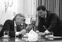 El contador empezó a girar a las diez y media de la mañana. Siete horas más tarde, 20.004 personas ya habían tomado la opción por el régimen de reparto. Fueron los primeros en abandonar las AFJP, en el marco de la reforma previsional que habilitó los traspasos después de doce años. En la Anses reinaba un clima de triunfalismo, tanto por la cantidad de adhesiones al sistema público como por la aceptable respuesta de los dispositivos informáticos. Néstor Kirchner encabezó por la mañana un acto en Casa Rosada donde se lanzó formalmente el período de 180 días para cambiar de régimen. Estaban presentes los jefes sindicales Hugo Moyano y Hugo Yasky. El Presidente arremetió contra la jubilación privada: la calificó como un sistema “perverso”. Para completar el gesto, firmó su salida de una administradora, adonde había sido anotado como indeciso, y se inscribió en el Estado.