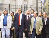 El presidente Kirchner subrayó que “rentabilidad empresaria no es incompatible con mayores salarios. Queremos que los trabajadores participen cada vez más en la renta y también queremos la rentabilidad empresaria”, sentenció. Y defendió la metodología de las negociaciones entre la patronal y los empleados, porque “es una clara muestra de convivencia en democracia”. Durante su extenso discurso en la Casa Rosada, rodeado de sindicalistas y empresarios, Kirchner denunció a “sectores e intereses que apostaban a una gran confrontación, porque hablaban de la irresponsabilidad sindical”. “Hay estructuras de medios en la Argentina que quieren un país para pocos: se terminó la presión o la extorsión mediática”, advirtió.