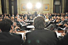 Morales y Estenssoro también mencionaron usar el superávit de la Anses, la rentabilidad del FGS y transferir la responsabilidad del pago de la AUH al Tesoro. Sobre el superávit de la Anses, Bossio aclaró que lo único que se podría usar es el de este año, ya que el resto se encuentra en el FGS, y que sólo alcanzaría para pagar el 17 por ciento de lo que demanda un mes de liquidación de jubilaciones. Sanz, finalmente, planteó hacer una reasignación presupuestaria y echar mano al superávit fiscal de este año, que sería mayor al previsto en el Presupuesto. Boudou le pidió entonces que dijera qué gastos recortaría –“salud, educación, obras públicas”– para subir las jubilaciones.