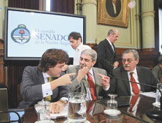 El secretario de Finanzas, Adrián Cosentino, aseguró que la Argentina tiene “un fenomenal margen de maniobra” en el manejo de su deuda y que cuenta con “una baja dependencia del financiamiento externo”. “Para los próximos tres años, lo que tenemos que pagar de intereses no supera el uno por ciento del PBI y lo que tenemos que afrontar por amortizaciones no llega al dos por ciento”, agregó el funcionario. Por su parte, el secretario de Hacienda, Juan Carlos Pezoa, afirmó que las provincias recibirán 10.000 millones de pesos del Fondo Federal Solidario, que servirá para financiar “casi un 25 por ciento de las obras que realicen las jurisdicciones”.