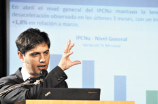 El ministro también se refirió a las consultoras privadas. Por un lado, las citó para confirmar, a través de sus mediciones, la tendencia a la desaceleración que registra el IPC-Nu del Indec. “Si se tomara un promedio simple de las mediciones privadas, se nota en el mes de abril una desaceleración con respecto a datos de meses anteriores”, dijo. Sin embargo, luego advirtió que “entre los informantes privados encontramos un marco de muchísima dispersión. Estos índices son muy recurridos, pero en un extremo en la medición de abril vemos que una consultora mide un avance del 1,6 por ciento y otra, un 2,9 por ciento. Y no sólo hay una absoluta inconsistencia entre los informantes, sino entre las propias series de cada uno de ellos. No hay demasiado para concluir desde el punto de vista analítico, en función de la falta de rigor técnico que hemos mencionado muchas veces y la opacidad metodológica de estas entidades”.
