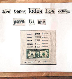 “Acá tenés todos los dólares para tu hija.” La frase armada con fragmentos de diarios pegados en una hoja blanca de papel fue dejada anteanoche a un funcionario de la gerencia del Banco Central. El directivo, que pertenece al área legal del organismo, estuvo a cargo el martes pasado de dos allanamientos en San Isidro. En uno de estos establecimientos ilegales, que funcionaba asociado a una joyería dentro de la Galería Queen Village, se había incautado un arma automática Glock junto a grandes volúmenes de dinero. La investigación vincula la amenaza con esta cueva financiera. No es la primera amenaza que recibió este directivo, quien no se da el nombre por razones de seguridad, desde que se intensificaron los controles sobre el mercado ilegal de divisas, dijo una fuente del directorio del BC a Página/12. El presidente del Banco Central, Alejandro Vanoli, y su familia también recibieron por estos días este tipo de mensajes mafiosos vía telefónica.