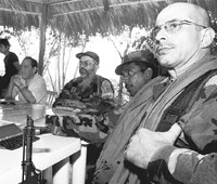 El gobierno y las FARC iniciaron a las 10.30 hora local la reunión decisiva que determinaría si el proceso de paz continuaba o no, a menos de 14 horas de vencerse el ultimátum fijado por Pastrana. Bajo la gestión de las Naciones Unidas, de embajadores de los 10 países facilitadores y de la Iglesia Católica, las FARC y el gobierno debían acordar un cronograma para seguir las negociaciones, congeladas por los rebeldes el pasado 17 de octubre. Antes de iniciarse la reunión de ayer, Raúl Reyes, uno de los voceros de las FARC, señaló que había acuerdo en parte de la propuesta del cronograma presentada por el gobierno, sin dar mayores precisiones. Entrevistado por la prensa en el área de distensión, el negociador de las FARC señaló que “vamos a trabajar sobre el cronograma hoy. Hemos trabajado ayer en los puntos en los que hay coincidencia; los hemos separado ya y hoy queremos concretarlos, y adicionar unos nuevos”.