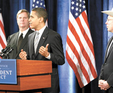 Al frente de sus respectivos departamentos, Vilsack y Salazar se pondrán al servicio de los granjeros y la política medioambiental y energética del país y no a favor de “los grandes conglomerados agrícolas o los intereses especiales”, aseguró Obama. Salazar, presente en la rueda de prensa con su característico sombrero vaquero, prometió colaborar con el Departamento de Energía para reducir la “dependencia del petróleo extranjero” y promover la independencia energética del país.