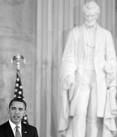 “Siento una especial gratitud a esta singular figura que de tantas maneras hizo mi propia historia posible, y que de tantas maneras hizo posible la historia de Estados Unidos”, agregó. “Estamos mucho menos divididos que en la época de Lincoln, pero nuevamente estamos debatiendo los asuntos críticos de nuestra época y lo hacemos con energía”, declaró. Obama no es el primer presidente que se siente inspirado por Abraham Lincoln. Nixon hizo por lo menos una visita nocturna al Lincoln Memorial para tener una conversación con la estatua. Teddy Roosevelt usaba un anillo hecho con un rizo del cabello de Lincoln. Franklin Delano Roosevelt contrató a Robert Sherwood, quien ganó un premio Pulitzer por su obra Abe Lincoln en Illinois, para que le escribiera sus discursos. Lincoln es reconocido como el presidente que promovió la lucha contra la esclavitud, logró su abolición a través de la decimotercera enmienda a la Constitución y, después de derrotar a la secesionista Confederación de Estados del Sur, logró reunificar el país.