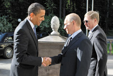 Obama comenzó su día con una reunión de desayuno con el primer ministro Vladimir Putin, todavía el hombre más poderoso del país, en la dacha de Putin en las afueras de Moscú. En su primer encuentro, Obama elogió “el extraordinario trabajo” que había hecho Putin para el pueblo ruso, un intento aparente de borrar el recuerdo de sus duros comentarios la semana pasada, cuando dijo que Putin todavía tenía un pie en la pasada Guerra Fría. Putin devolvió el elogio, diciéndole al presidente estadounidense: “Nosotros vinculamos su nombre a las esperanzas por el desarrollo de nuestra relación”.