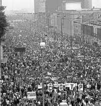 “Que Dios nos ayude para que todo se desarrolle dentro de un marco de tranquilidad”, fueron las desesperadas palabras del ministro del Interior, Alberto Sanabria, horas antes de la anunciada jornada nacional de protesta para exigir el levantamiento del estado de emergencia y la solución a la huelga de los maestros. Treinta mil personas, entre maestros, estudiantes, agricultores y trabajadores en general, salieron ayer a las calles limeñas, mientras que en ocho ciudades del interior del país se cumplían los paros convocados por los gobiernos regionales. Contra lo esperado, la marcha del día anterior resultó multitudinaria y pacífica, pero el saldo para el gobierno sigue siendo negativo, pues reveló la falta de autoridad del régimen. Y es que el gobierno ha vuelto a dispararse a los pies, al decretar el estado de emergencia y darles el control interno a las Fuerzas Armadas frente a las manifestaciones de protesta de cientos de trabajadores y maestros a nivel nacional, durante las últimas semanas.