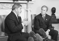 Bush indicó que desde el punto de vista personal estaba muy impresionado por la visión del presidente de Brasil. “No sólo tiene un enorme corazón, sino que tiene la capacidad de trabajar estrechamente con su gobierno y con el pueblo brasileño para alentar la prosperidad y poner fin al hambre”, agregó. Lula dijo por su parte que esperaba que pudieran tener pronto un encuentro en Brasil, así el presidente Bush podía ver personalmente las dimensiones y tamaño del país, “que Brasil no es sólo carnaval y fútbol, que tiene otras maravillas”, provocando así la risa de su anfitrión.