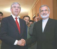 El canciller británico, Jack Straw, quien llegó ayer a Teherán en una visita de dos días, llamó a Irán a firmar prontamente y en forma incondicional el protocolo adicional de la Agencia Internacional de Energía Atómica (AIAIEA). Su par iraní, Kamal Jarazi, reiteró que su país no autorizará a los inspectores de la ONU a visitar sus instalaciones nucleares sin avisar mientras Occidente no coopere con él en este ámbito. La visita de Straw fue rápidamente organizada cuando el programa nuclear iraní suscita la preocupación en particular de Estados Unidos que teme que Irán pueda estar preparando un programa nuclear. Además Jarazi pidió una pronta retirada de las fuerzas angloestadounidenses en suelo iraquí y ofreció ayuda para el establecimiento de un Irak estable.