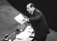EL MUNDO › BERLUSCONI ASUMIO LA PRESIDENCIA DE LA UE CON UN TRASPIE