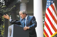 Su secretario de Estado Colin Powell mostró la misma incertidumbre sobre la captura de Saddam Hussein pero estuvo más original en su valoración: “Saddam ya sólo es una basura a la espera de ser recogida”, dijo Powell. Bush mostró un creciente dominio en el arte del desvío. Repitió machaconamente una serie de afirmaciones (“Saddam Hussein era una amenaza”, “El mundo es ahora un lugar más seguro”, “La desaparición del régimen iraquí ayudará a estabilizar la región”) y con ellas logró pasar por encima de las cuestiones más polémicas. Sólo hizo una concesión, cuando le preguntaron si era suya la responsabilidad de haber acusado falsamente a Irak por sus supuestas intenciones nucleares: “Asumo la responsabilidad de todo lo que digo, por supuesto. Absolutamente. También asumo la responsabilidad de tomar decisiones sobre guerra y paz. Analicé una recopilación minuciosa de información, buena, sólida y consistente, que me permitió llegar a la conclusión de que hacía falta quitar a Saddam Hussein del poder”, dijo Bush. Con tono de resentimiento, reconoció que siente la necesidad de aportar pruebas sobre el supuesto arsenal iraquí “para apaciguar a los críticos y a los cínicos sobre las intenciones de EE.UU. Y tengo confianza en que nuestra búsqueda demostrará aquello en lo que creo con firmeza: que Saddam tenía un programa de armas”. En varias ocasiones abogó por la vía diplomática para el conflicto con Corea del Norte y por la presión internacional para el otro vértice de su “eje del mal”, Irán.