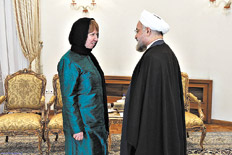 Ashton fue recibida por el presidente Rohani. El mandatario se dijo dispuesto a mejorar la relación con la UE y propuso cooperar en las áreas de energía, tránsito, lucha contra el extremismo, el narcotráfico y el terrorismo y en los conflictos en Siria e Irak, según informó la agencia semioficial iraní ISNA.