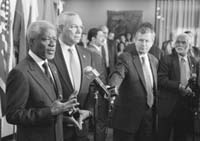 John Negroponte, embajador estadounidense ante Naciones Unidas, dejó abierta alguna posibilidad: “Hay muchas reflexiones y valoraciones en cuanto a lo que habría que hacer para abordar los muchos desafíos que se plantean en Irak. No tenemos propuestas específicas sobre la mesa en este momento”. Powell ha hablado sobre la resolución con responsables de exteriores de Francia, Alemania e Italia, según el Departamento de Estado, además de, obviamente, Reino Unido. El británico Jack Straw se entrevistó ayer en Nueva York con Kofi Annan.