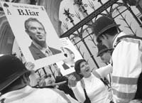 La vista no fue retransmitida por televisión pero sí se le permitió la entrada del público a la sala, que reforzó visiblemente sus medidas de seguridad. A su llegada, se encontró con un centenar de pacifistas que, como ya ocurrió con su jefe de comunicaciones, Alastair Campbell, y anteayer mismo con su ministro de Defensa, Geoff Hoon, lo recibieron con abucheos y pancartas como “Blair y Bush, buscados por crímenes contra la humanidad”.