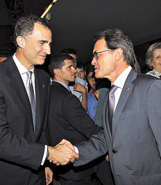 Asimismo, subrayó que sus visitas a Cataluña tenían como objetivo “hacer más presente a la corona en esta tierra” con el fin de “transmitir mensajes de respeto, entendimiento y convivencia” como “consustanciales a nuestra monarquía parlamentaria”. Pese a la coincidencia del rey y Mas en Gerona, no estaba previsto ningún encuentro formal entre ambos, más allá de un saludo de cordialidad y el intercambio de palabras que propicia un evento de estas características. Entre los asistentes a la cena del foro figuraban algunos de los principales empresarios de España, unos con posiciones claramente contrarias a la independencia y otros con posturas más ambiguas, que contemplan una mayor autonomía para la región.