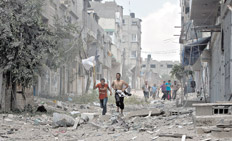 La familia Al Qassas huía del barrio en medio del fuego junto a cientos de otras familias cuando un proyectil impactó en el lugar. Mahmud, de diez años, resultó herido y a pocos metros de allí una mujer fue partida en dos. Pero no sólo había civiles en la ciudad de Shajaiya. Se podía ver a combatientes de Hamas aprovechando un breve cese de fuego para evacuar a los pobladores heridos para esconder sus armas.