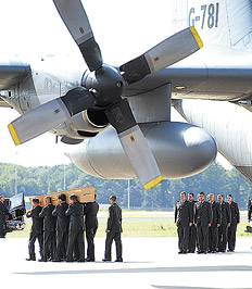 Dos aviones militares procedentes de la localidad ucraniana de Jarkov aterrizaron ayer en Holanda con los cuerpos de otras 74 víctimas mortales del vuelo MH17, que se estrelló hace una semana, presuntamente derribado por un misil. Los aviones, un Hércules holandés y un aparato australiano, llegaron a Eindhoven, donde aguardaban representantes del gobierno holandés y familiares de las víctimas, que los recibieron con una pequeña ceremonia y un minuto de silencio. Los 74 ataúdes fueron trasladados en una caravana de coches fúnebres al cuartel de Hilversum, cerca de Amsterdam, donde tuvo lugar la etapa más difícil: la identificación de los cadáveres por un equipo forense.