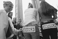 Las encuestas alejan a Gray Davis del 50 por ciento de votos que necesita para mantenerse en el cargo en unas elecciones que son, en primer término, un referéndum sobre su gestión. Si no consigue ese porcentaje, se pone en marcha el recuento para determinar el nombre de su suplente. La lista está encabezada sólidamente por Arnold Schwarzenegger, con un 42 por ciento en intención de votos según la última encuesta de Los Angeles Times. Su contrincante, Cruz Bustamante, “heredero” de Davis, sólo lograría un 32 por ciento de los votos. Los demócratas aseguran que sus encuestas internas reflejan un empate al 31 por ciento entre Schwarzenegger y Bustamante e insisten en que el resultado dependerá sobre todo del nivel de participación en una convocatoria que, en ocasiones, empieza a provocar vergüenza ajena.