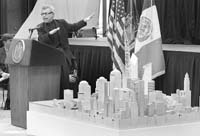 A la presentación del diseño definitivo de la Torre de la Libertad asistieron el gobernador del Estado de Nueva York, George Pataki, y el alcalde Michael Bloomberg. “Va a mostrar al mundo hasta qué punto Nueva York es fuerte y tiene confianza”, afirmó Pataki. Bloomberg, por su parte, dijo que con la nueva Torre la ciudad “volverá a recuperar el skyline (contorno en el horizonte)” que perdió el 11 de septiembre de 2001.