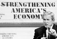 La encuesta refleja una valoración positiva también hacia el desempeño económico de la Casa Blanca. El crecimiento económico analizado fue del 8,2 por ciento en el tercer trimestre de 2003, según cálculos definitivos que el Departamento de Comercio difundió ayer en Washington. Y las primeras cifras del cuarto trimestre anuncian que la demanda seguirá en curso ascendente. El apoyo de los electores se sitúa en un 51% de los votantes y el 42% se atreve incluso a calificarla de “buena” o “excelente” la gestión económica. Los bajos tipos de interés, los recortes en los impuestos y los signos de recuperación económica están en el origen de este cambio de actitud entre los votantes. Pero todavía existen algunas dudas importantes que podrían acabar pasándole factura el año que viene en las urnas, como le sucediera a Bush padre. El nivel de paro sigue siendo muy elevado (5,9%) y durante su presidencia se han destruido tres millones de empleos.