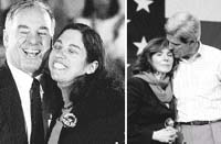 La más fascinante de las esposas es Teresa Heinz Kerry, viuda del senador republicano John Heinz, cuyos hábitos de franqueza lograron tantos titulares que la campaña de Kerry asignó a un asesor de imagen para que no meta la pata. El domingo a la noche, sin embargo, sobresalió como una duquesa en un burdel, sentada en un escenario con los anteojos de sol levantados, estilo Jackie Kennedy, sobre su cabello, con un echarpe verde pálido flotando alrededor de su cuello. Estoicamente pretendía seguir una arenga política que debe haber escuchado mil veces, pero es improbable que jamás iguale a Laura Bush como la arrobada y devota esposa de un político, con su permanente sonrisa congelada. Cuando comenzó la reunión, casi una hora y media tarde, se levantó y saludó a la compacta audiencia mientras Kerry la presentaba como “una notable mujer que será una sobresaliente primera dama”. Y, podría haber agregado, también la más fascinante.