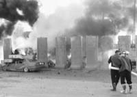 La identidad de quienes se encuentran detrás de la ininterrumpida campaña de ataques suicidas no es clara: Estados Unidos afirma que los atacantes provienen del exterior, aunque es probable que los iraquíes estén profundamente involucrados en el suministro de inteligencia y logística. Pero los ataques se ejecutan sin que importe si hay bajas civiles iraquíes o no. Hace sólo cuatro días, una ambulancia blanca se aproximó al Hotel Shahin en el barrio bagdadí de Karada. El chofer le dijo a un policía que le preguntó qué estaba haciendo allí: “me dijeron que viniera a llevar el cuerpo de alguien que acaba de morir”. El policía le dijo que no sabía nada acerca de ningún cadáver. En este punto el chofer apretó con fuerza el acelerador para llevar su vehículo más cerca del hotel. La policía se dio cuenta de que era un atacante suicida y abrió fuego. Pero era demasiado tarde. La ambulancia estalló. La explosión mató a tres personas, se devoró al Shahin y tumbó las paredes de una comisaría situada en la vereda de enfrente.
