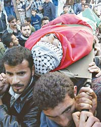 Ayer por la tarde, mientras Hamas y la Jihad Islámica juraban venganza por la incursión, miles de personas seguían la procesión funeraria por los 14 muertos. Después de lo que algunos observadores vieron como una nueva táctica para sacar a los militantes a la calle, el ejército israelí dijo que la incursión había estado dirigida a “destapar células terroristas” en El-Bureij, responsabilizado de ataques reiterados con morteros y cohetes a colonias israelíes, incluyendo Netzarim, en el centro de Gaza. El ejército insistió que la incursión no tenía relación con la operación frustrada, pero muy planificada, de militantes palestinos en el cruce de Erez a Gazael sábado. En ese ataque cuatro militantes y dos policías palestinos murieron cuando un convoy de tres vehículos, incluyendo al menos un jeep enmascarado como un vehículo del ejército israelí, transitaba por el punto de cruce.