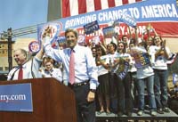 No menos notable, sin embargo, fue la asistencia prevista anoche de dignatarios. Bill Clinton y Jimmy Carter, dos ex presidentes sobrevivientes que no siempre estuvieron de acuerdo, estaban ahí. También estaban Al Gore, el ex vicepresidente de Clinton, y dos ex candidatos demócratas a la Casa Blanca, Eugene McCarthy y George McGovern, así como la mayoría de los derrotados rivales de Kerry en 2004. También estaban yendo el general Wesley Clark, el senador John Edwards, el ex líder demócrata del senado, Richard Gephardt y Howard Dean, simbolizando la manera en que el partido ha dejado las diferencias de lado para el supremo propósito de derrotar a Bush. Kerry regresó a Washington el miércoles a la noche después de unas vacaciones de esquí en Idaho, declarándose “totalmente recargado” por la semana de descanso. Previamente había pasado la peor semana de su renaciente campaña, golpeado por los avisos publicitarios republicanos de televisión que lo catalogan como un ultraprogresista inconsistente, y tratando de explicar una serie de gaffes. El daño no es irreparable. Las últimas encuestas muestran al senador en un empate estadístico cabeza a cabeza con Bush en una carrera de dos hombres por la Casa Blanca. Si Ralph Nader, el veterano partidario de los derechos del consumidor se incluye, Bush tiene una pequeña ventaja. Pero no es seguro que Nader, que se postula como independiente, llegue a juntar votos en muchos estados.